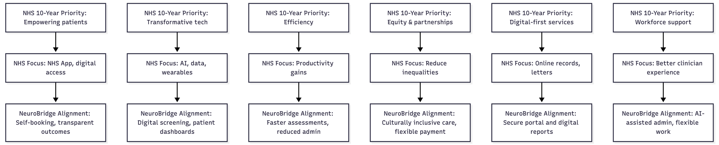 4. Partnership with the NHS: We align with NHS priorities for accessibility, efficiency, and equity — enabling flexible care models that integrate with local health systems, schools, and employers.